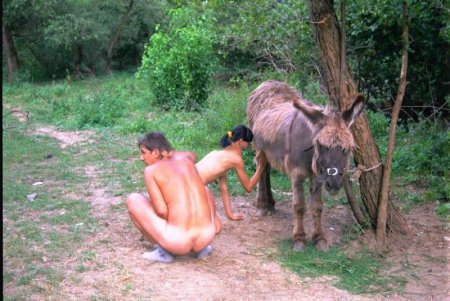 Заядлые зоофилы устроили групповуху с ослом в лесу. Порно фото как девица дрочит и сосет длинный ослиный член парень трахает сердобольную шалаву, потом зоофилка отсасывает дружку и животное ебёт озабоченную бабенку, крупный план длинный член осла в пизде зоофилки порно фото